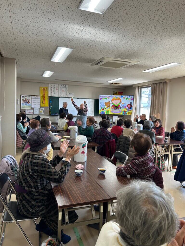 ふれあい食事会2月活動報告 / ふれあい食事会 2月18日 (水)●場所 愛知コミセン 2階会議室●時間 受付 11時●食事 12時~ 冬の寒さが和らぐ一日となり、30名の方にご参加いただきました。今月お誕生日の3名の方には、お祝いの品をお贈りし会の皆さまと一緒にハッピーバースデーソングを歌いました。お食事の後、各テーブルにて「ババ抜き」を行いました。「私のカードなかなか揃わないわ〜」「あーダメなの引いちゃった〜」「あと、 1枚」と…会場は大いに盛り上がり、各テーブルの 1位の方にはチョコレートの記念品をお渡ししました。