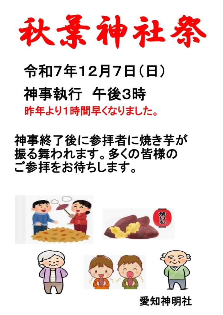 愛知神明社にて、秋葉神社祭を令和7年12月7日(日)に開催します。